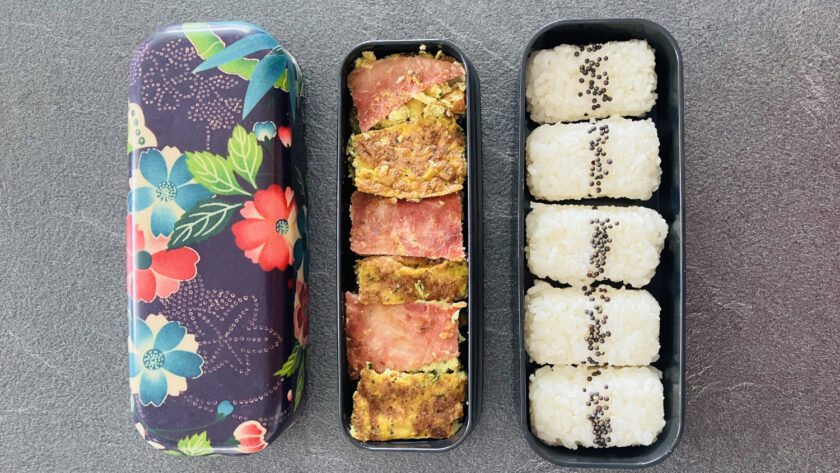 Je les ai accompagnés d’onigiris au gomasio pour apporter au riz un bon goût de graines grillées tout en étant facile à saisir pour manger sur le pouce ! Bien plus simple à déguster que du riz en vrac dans le bento, n’est-ce pas ?