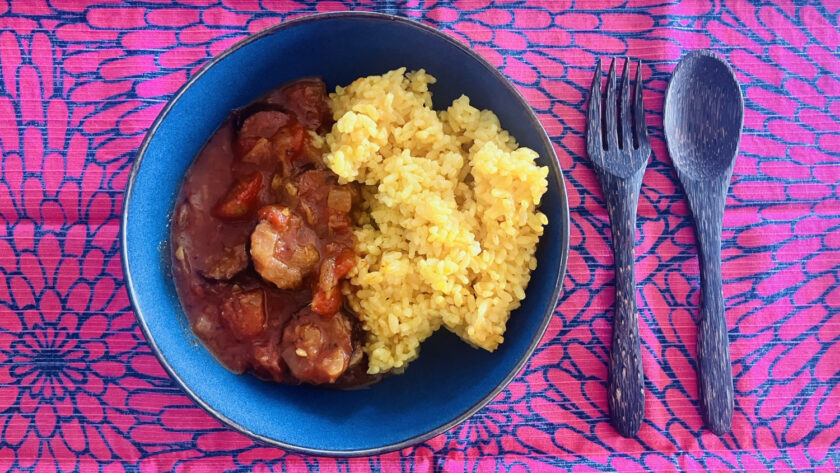Servez le rougail saucisse avec du riz nature – ou faites du riz au curcuma comme moi pour la jolie couleur ensoleillée 🙂 ! C’est un incontournable qu’il faut absolument gouter. C’est un plat parfait pour se réchauffer cet hiver ! L’essayer c’est l’adopter !